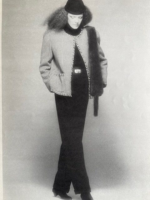 В 1970-е Yves Saint Laurent продолжал развивать эстетику элегантного, но практичного стиля: смелые силуэты, мягкие линии и продуманное layering сочетались с яркими акцентами и контрастными фактурами. Его коллекции влияли на уличную моду через журнальные публикации и фотографии: свободные платья, жакеты и костюмы вдохновляли молодежь того времени на комбинирование слоев и эксперименты с пропорциями.