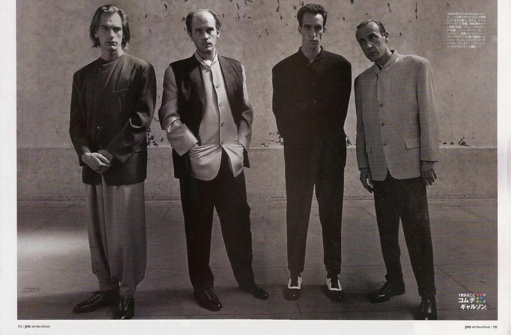 From left: the NYC crew, Messrs Jules Gayton, Mittleman, Ross, Kevin Williams and Jeremy Henderson, 1987; the London crew, Messrs Kopelman, Armitage, Turnbull, Lebon and Jones, 1989