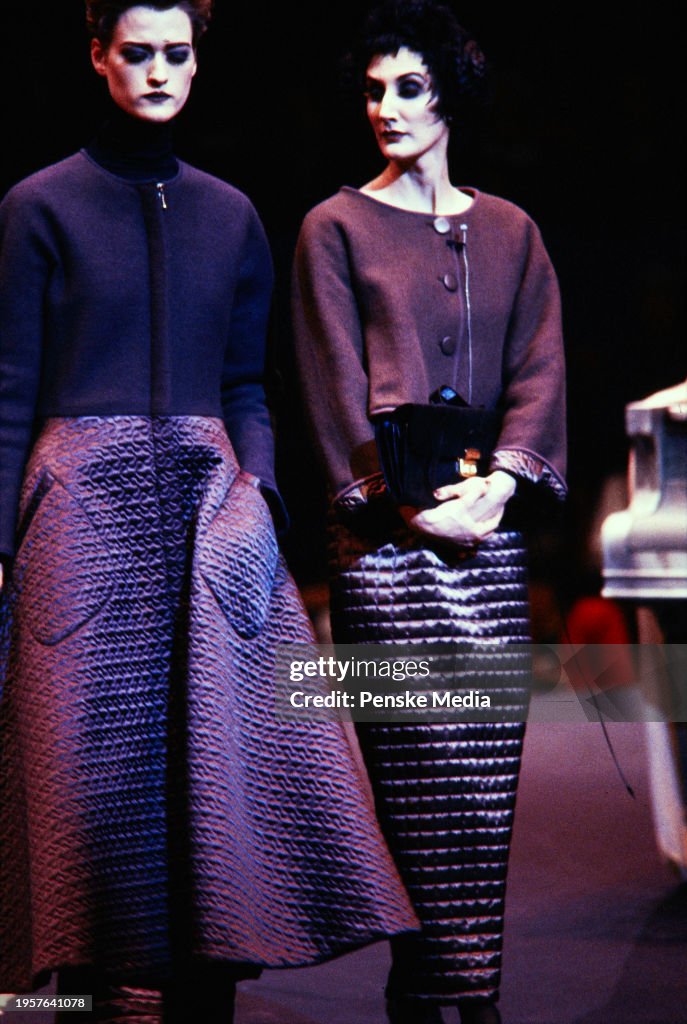 Коллекция осень 1985 года отличалась экспериментальной многослойностью и контрастными текстурами: плотные корсетные элементы сочетались с лёгкими драпированными тканями, создавая смелые для своего времени силуэты. Layering использовался как способ подчеркнуть структуру тела и добавить динамику образу, а игра материалов (шёлк, трикотаж, кожа) формировала визуальную динамичность коллекции.