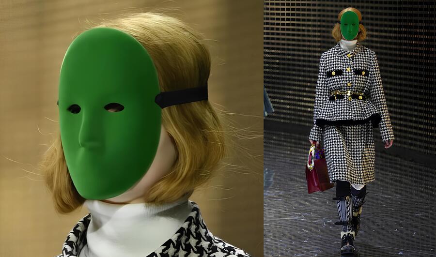 Я взял образы с показа Gucci Fall/Winter 2019 как визуальные референсы и загрузил их в Midjourney. Они нужны были не для точного копирования, а для задания общего стиля и уровня сложности образов.