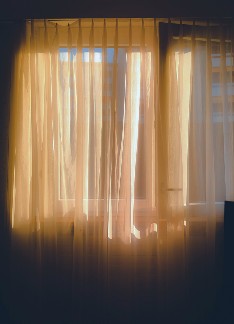 Состояния умиротворённости и замедления: дюны без следов, гладкая вода, мягко колышущиеся занавески.