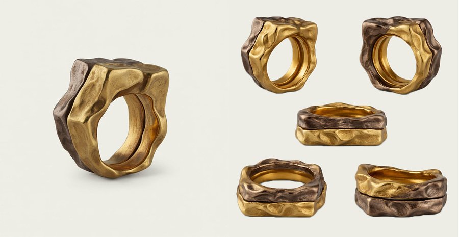 Объединяющие принципы: -скульптурный подход, а не классическая ювелирная форма -выразительная геометрия -ощущение «материальности» стихии -каждое кольцо — самостоятельный объект, но часть системы