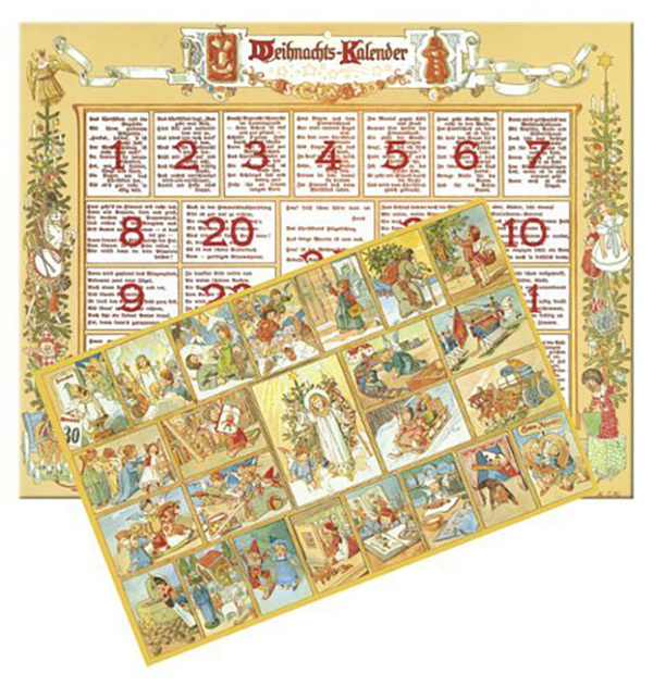 Первые прототипы современных рождественских календарей появились в Германии в 1840-е годы. Их создавали в лютеранских семьях, чтобы помочь детям наглядно отслеживать оставшиеся до праздника дни. В католической традиции такой необходимости не возникало. Время ожидания Рождества определялось ежедневными богослужениями, тогда как лютеране проводили молитвы дома.