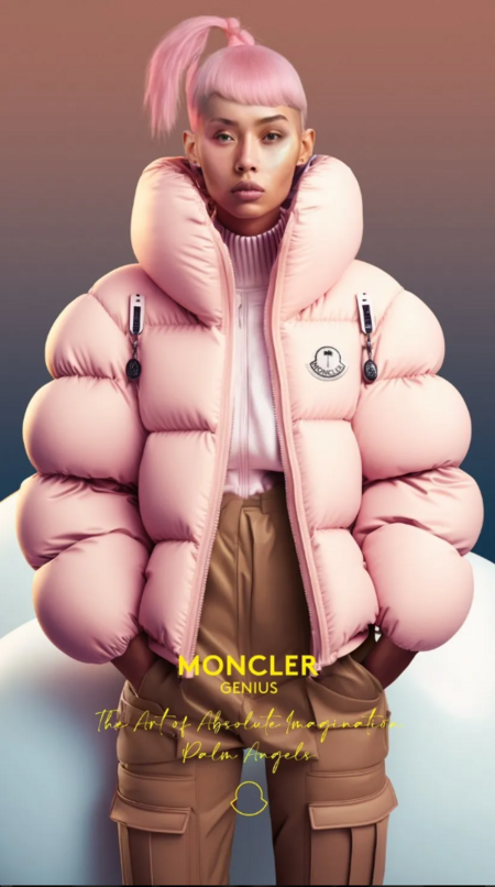 Даже такие бренды с большой историей и премиум-сегмента как Moncler сотрудничают с искусственным интеллектом при создании визуального контента и образа.