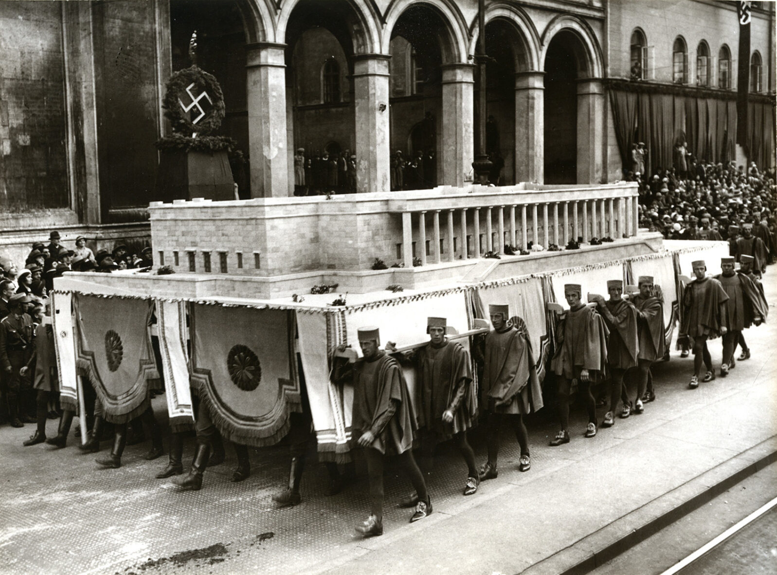 Вид изнутри (почетный подиум; слева «Четыре элемента» Адольфа Гитлера) Фотография Генриха Гофмана