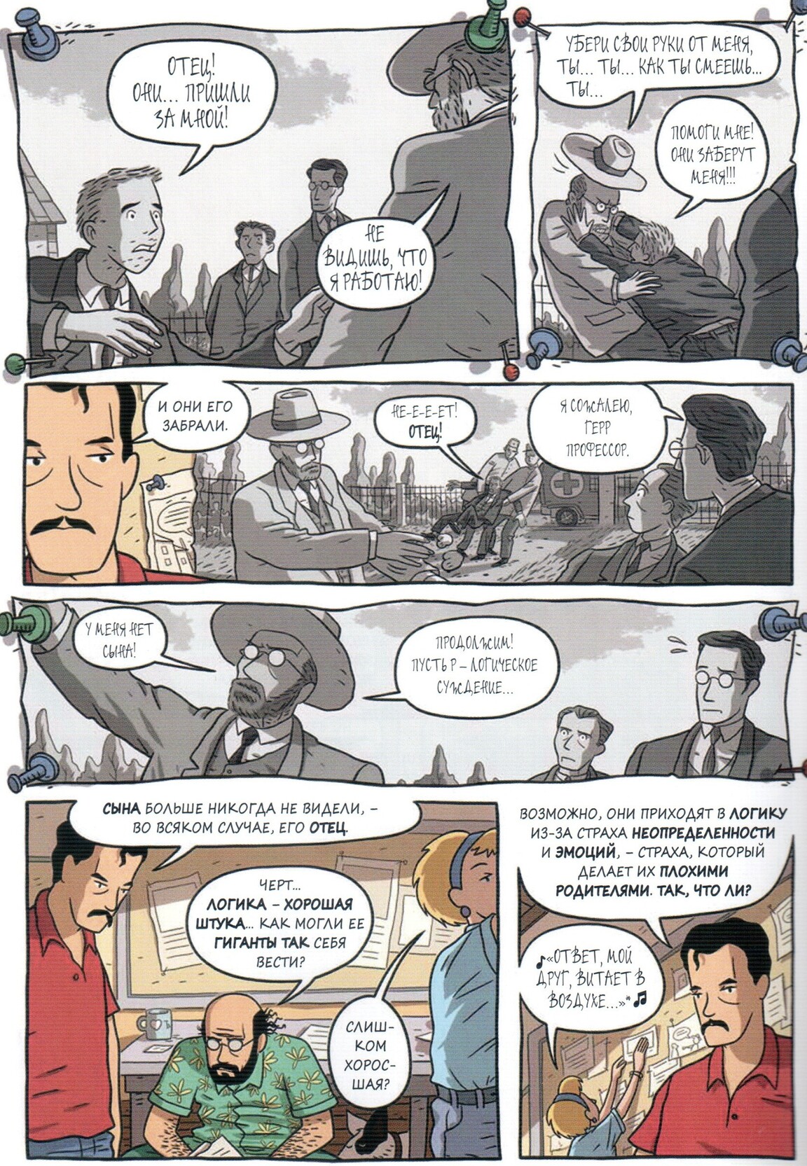 Доксиадис А., Пападимитриу Х. Х. Логикомикс. Поиск истины: графический роман / пер. с англ. С. Чернышова. — Москва: Карьера Пресс, 2014. — С. 56.