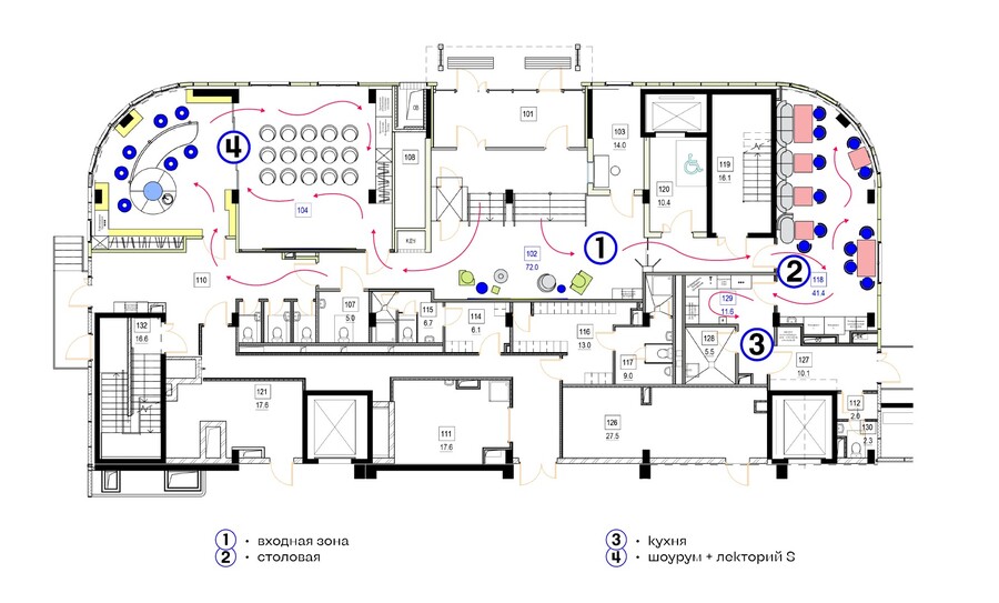 1. Функциональное зонирование этажа 1 2. Функциональное зонирование этажа 2 3. Функциональное зонирование этажа 4
