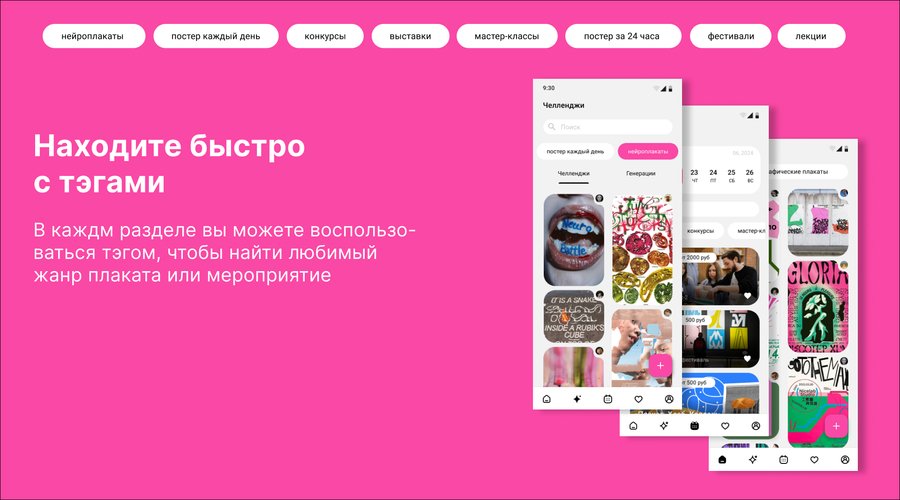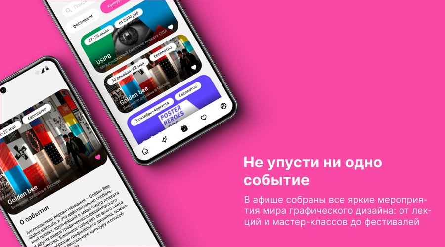 Приложение POSTer является фотохостингом для плакатистов. Я выделила такое направление, поскольку вокруг искусство плаката образовалось целое комьюнити со своими конкурсами, выставками и мероприятиями. Его деятельность настолько активна, что иногда сложно за всем уследить самостоятельно. Потому я решила создать приложение, которое упростила бы вход в это комьюнити, представляя из себя галерею работ, давая возможность участвовать в челленджах и с помощью афиши следить за организующимися мероприятиями.