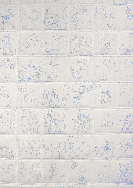 Обращаясь к воспоминаниям, мы представляем их как собрание отдельных кадров, обрывков самых ярких моментов, которые отложились в нашей памяти. Художница собирает мгновения своей жизни, которые имеют для нее наибольшую ценность, и объединяет их. Так, по кусочкам, складывается лоскутное одеяло, которое согревает приятными воспоминаниями.