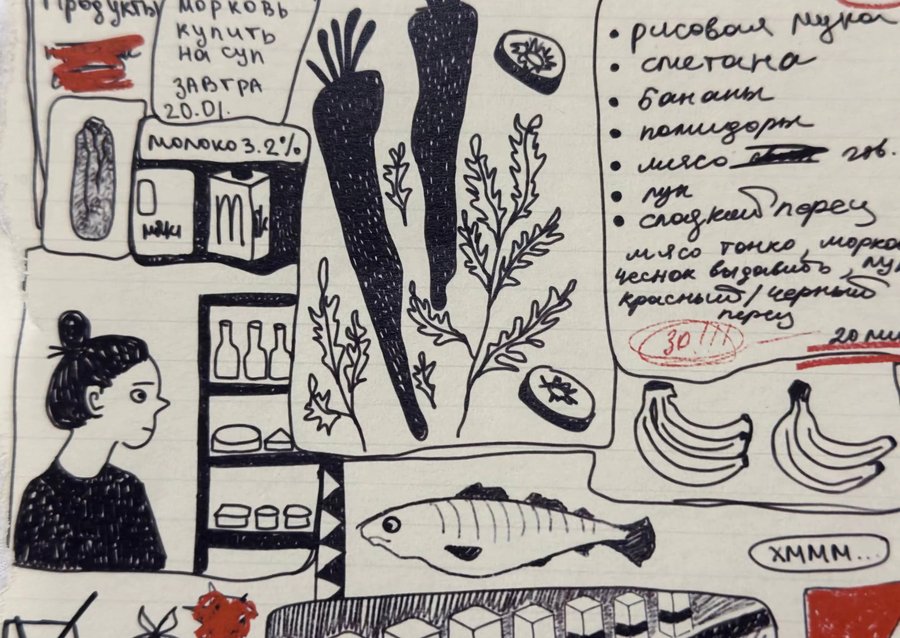 У каждого из нас есть свой сумбурный поток мыслей который мы не хотим забыть, но как было бы удобно если на каждую запись у нас была бы иллюстрация о тех вещах, мыслях или событиях, которые создает наш мозг. Проект «Сметана, бананы, помидоры» показывает мир одного человека в заметках и как они воплотились в жизнь.
