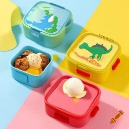 промпт: Bright lunchboxes with cartoon dinosaurs and ice cream on them. colors yellow, blue, red нейросеть: craiyon