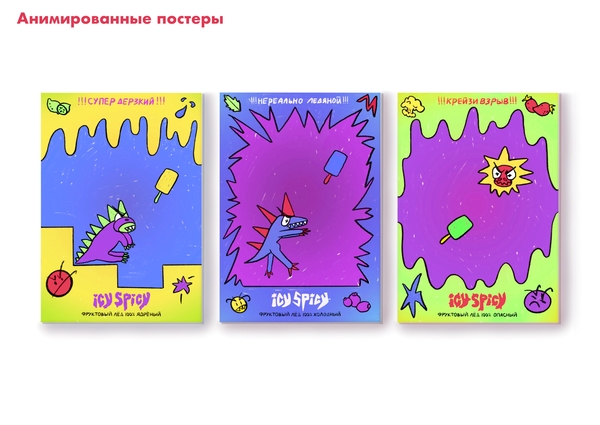 Описание проекта — Icy spicy — необычный фруктовый лёд, вкусы которого сводят с ума! Шипучее, ядовитое и ледяное мороженое раскрасит жаркие летние дни и подарит невероятное количество ярких эмоций. Будь таким же дерзким и крутым, как этот лёд!!!!!
