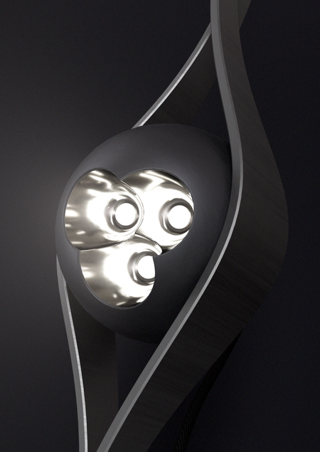 Направление света задаётся как с помощью поворотного основания, так и за счёт вращающейся шарообразной головки, напоминающей по форме раздувшуюся рыбу фугу.