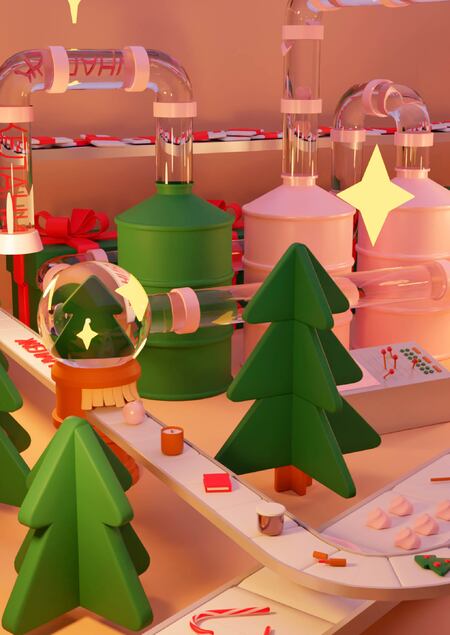 Сцена представляет из себя новогодний завод, с атмосферой праздника и уюта, ожиданием волшебства и подарков