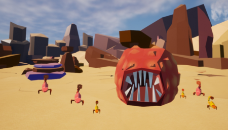 Видеоигра в VR, 3D арена-шутер. Вы оказались в пустыне полной враждебных насекомых. Передвигайтесь под землей, выпрыгивая на поверхность, чтобы стрелять по врагам. Победите главного врага — Пустынного камнегрыза.