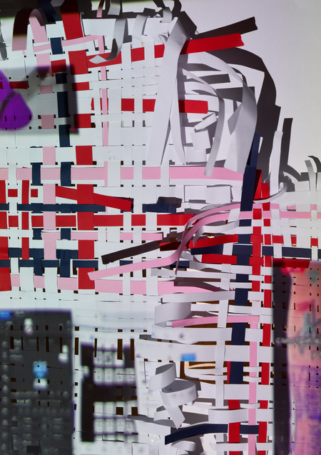 В своем проекте я представляю бесконечные потоки информации в виде отрезков бумаги, ткани и нитей. Их переплетение — отображение того, как воспринимается информация.
