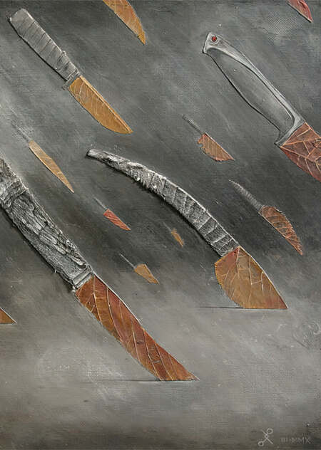 Холст, акрил, осенние листья, картон, марля, лейкопластырь, клей 50 × 50 см 2010