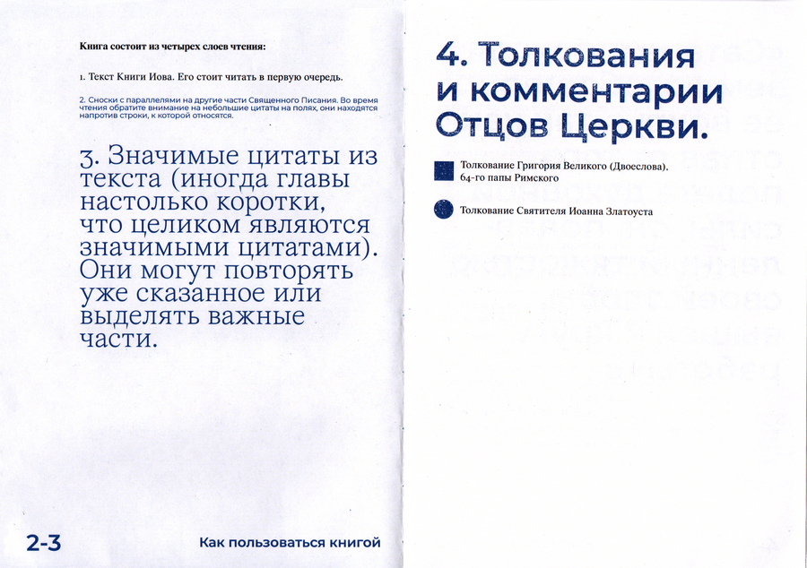 The book’s text is divided into the four layers of reading, where you can turn to the most Bible text in turn, a footnote with the references to the other Scripture books, a significant quote from the chapters and comments by the interpreters.