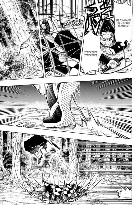 На представленных страницах из манги «Клинок рассекающий демонов» изображены звуковые эффекты с заостренными знаками, они означают резкие звуки и указывают на обострение обстановки. Также, резкие звуки прекрасно вписываются в общую картину, придавая определенное настроение движениям, композиции и атмосфере.