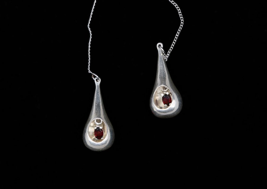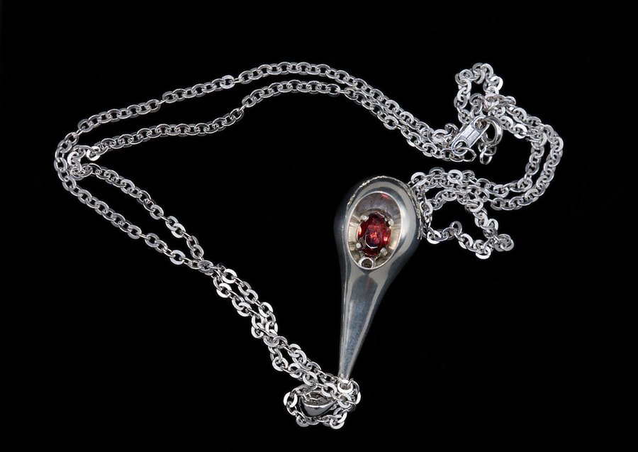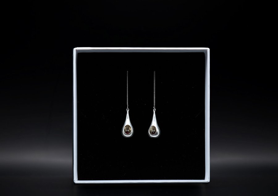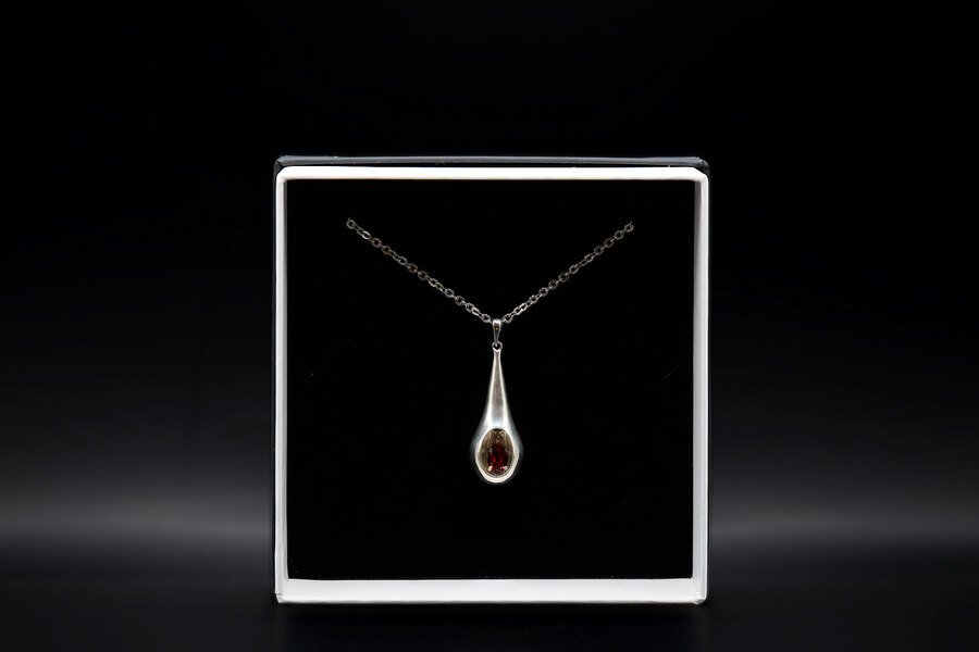 Внутри капли находится камень, размещённый так, чтобы создавать ощущение внутреннего движения и жизни.