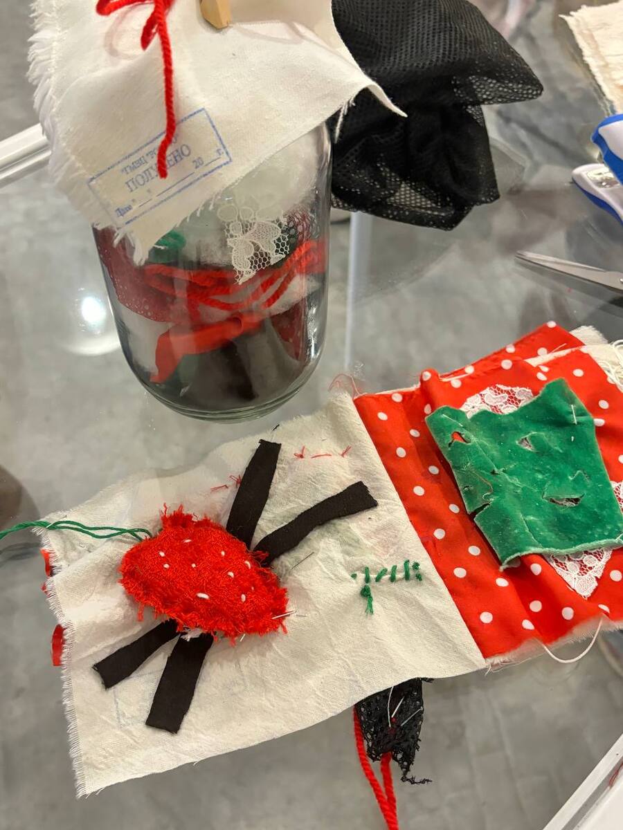 1.экскурсия — беседа по выставке с акцентом на материалы, используемые художниками, и взаимосвязи их с советским бытом и модой 2.лекция с обращением к повседневной одежде, субкультурной и альтернативной моде, особенностям материалов (ситец, сатин, крепдешин, шерсть, нейлон, кримплен) и игре с ними в стилизациях в андеграундной среде 1980–90-х. Благодаря подобранным образцам тканей разных десятилетий у учатников была возможность ощутить все рассказанное о тканях на своем тактильном опыте и узнать, как по материалу можно определить конкретное десятилетие 3.воркшоп по созданию авторского текстильного полотна и арт объекта