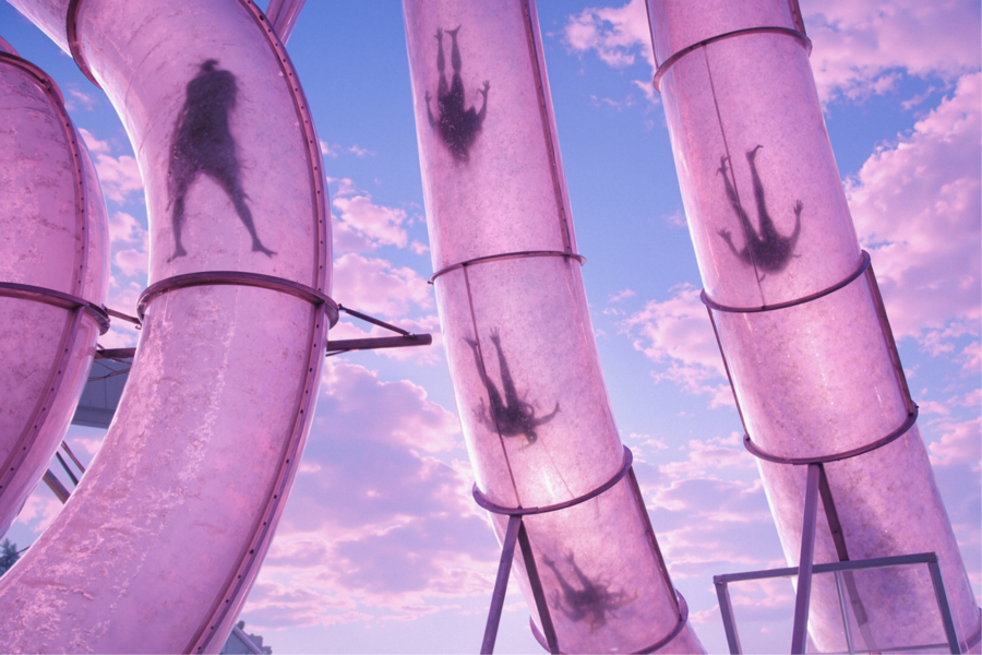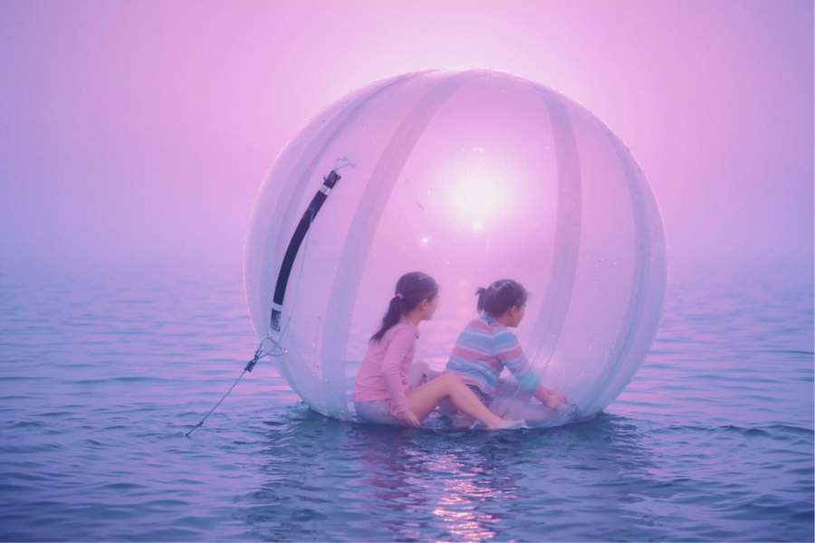 Состояние адаптированной реальности фиксируют повторяющиеся мотивы: замкнутые пространства, прозрачные оболочки, искусственные интерьеры, розовое свечение. Мир, в котором всё выглядит правильно, пока не становится пустым. Пока защита не превращается в ловушку, а фильтр — в единственный возможный способ видеть.