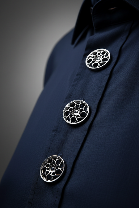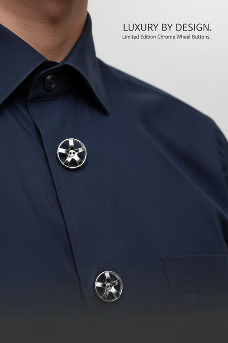 Пуговицы выполнены в форме миниатюрных автомобильных дисков, вдохновлённых дизайном культовых марок. Этот аксессуар объединяет эстетику автомобильной культуры с повседневной одеждой и подчёркивает индивидуальность владельца.