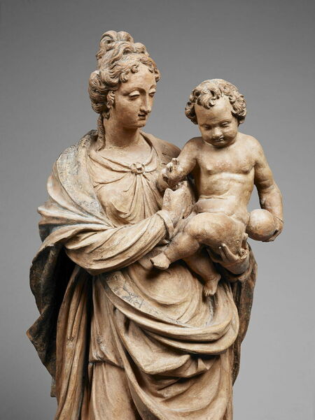 Скульптура Жермена Пилона является ярким примером позднего Ренессанса. Композиция отсылает к готическим мадоннам, что характерно для французского возрождения. Скульптура, также как и предыдущая символизирует образ Богородицы Марии с Христом на руках.
