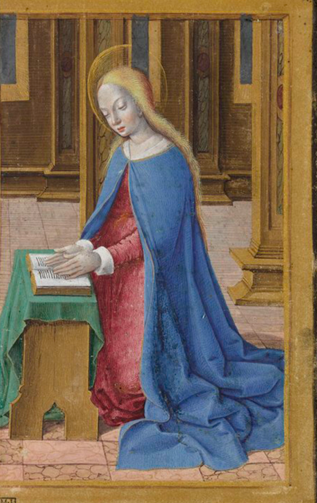 Первая миниатюра была написана примерно в 1510 году. На оборотной стороне была надпись «Sancta Maria Mater Dei», что в переводе означает «Святая Мария Матерь Божья». Вторая миниатюра написана примерно в 1475 году. На ней изображена Мария, читающая Священное писание: Библейский сюжет — Благовещение Пресвятой Богородицы.