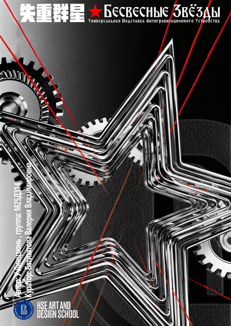 Поскольку я собираюсь разработать устройство антигравитации, а когда говорят о плавании, я сразу думаю о звездах. При этом устройство антигравитации имеет ощущение тяжелой промышленности и науки, поэтому визуальные элементы основаны на многослойных звездах и шестернях с металлической текстурой, отражающих тематику индустриального стиля и дизайна антигравитации.
