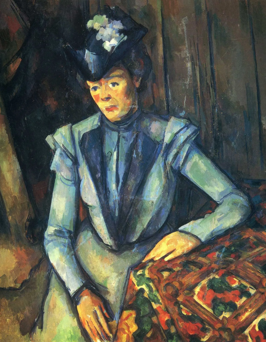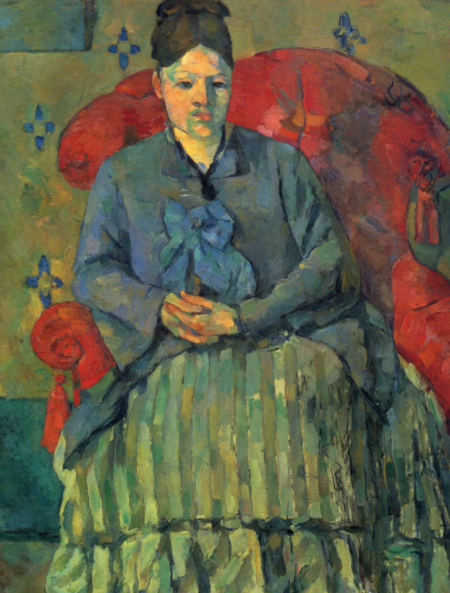 Мадам Сезанн в красном кресле Поль Сезанн 1877. Женский портрет (на фоне обоев) Илья Машков 1908.