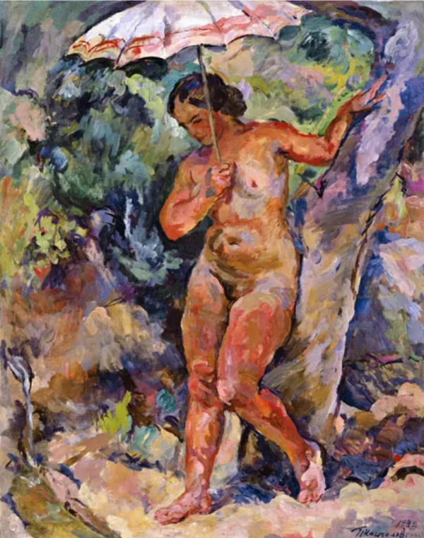 Девушка под зонтиком Пётр Кончаловский 1929. Женский пляж. Гурзуф Илья Машков 1925.