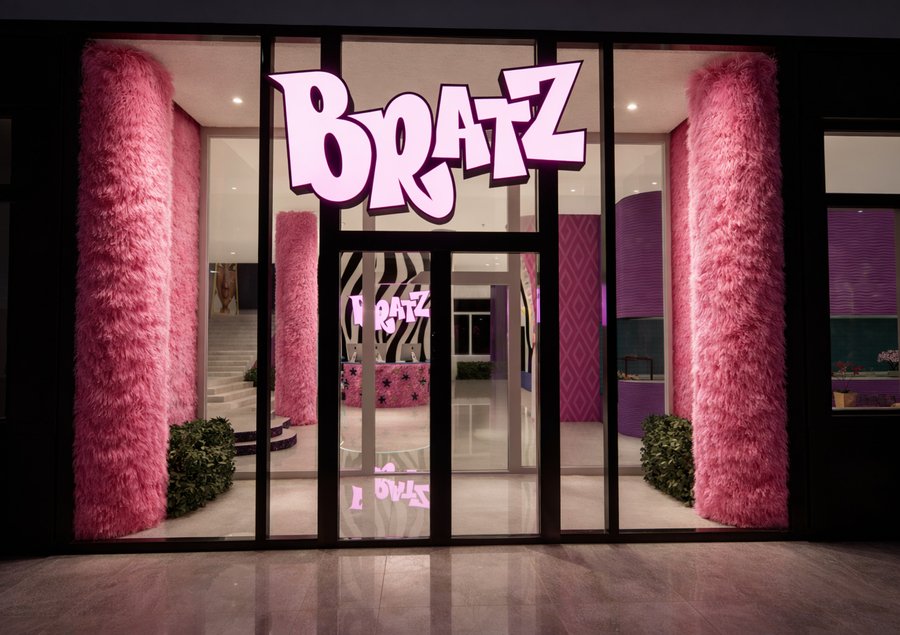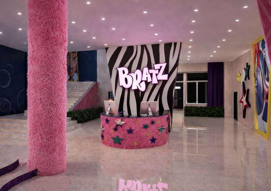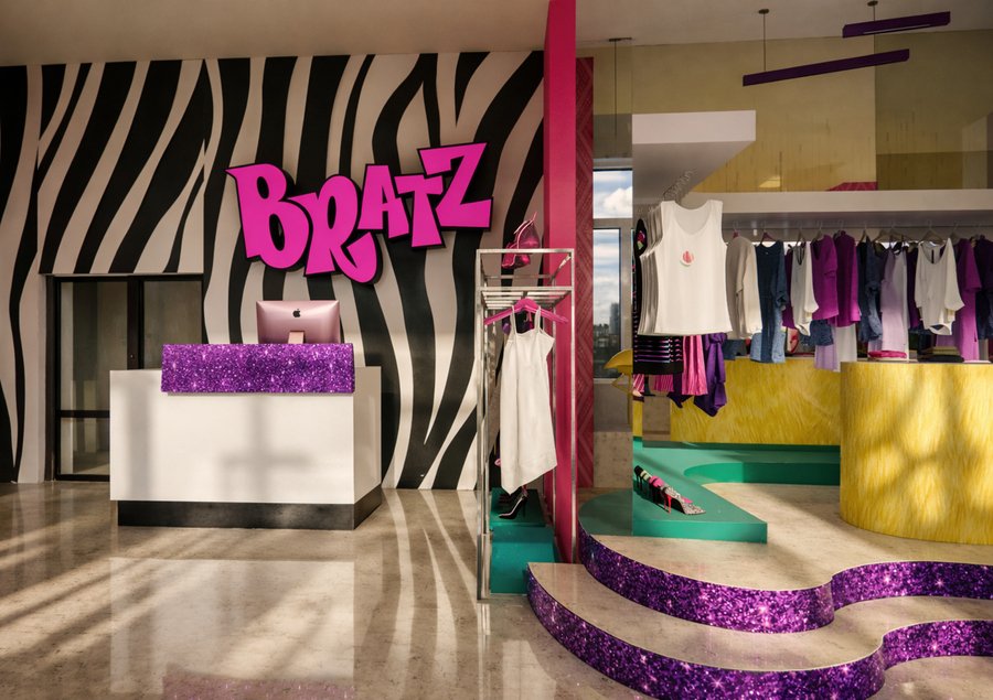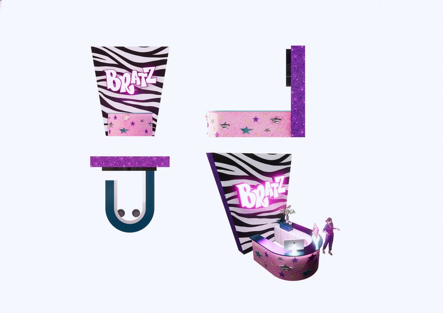 Пространство построено как «прогулка внутрь коробки с Bratz», где каждая зона раскрывает новую грань бренда.