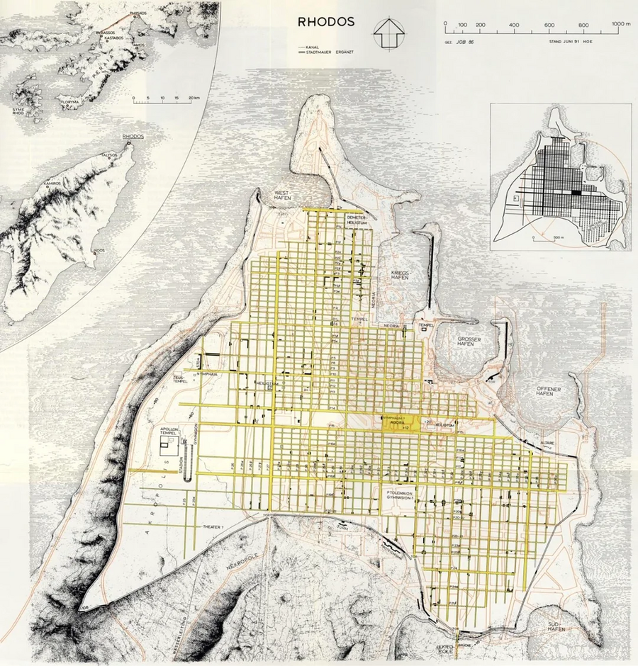 Данную систему связывают с именем древнегреческого архитектора Гипподама Милетского.
