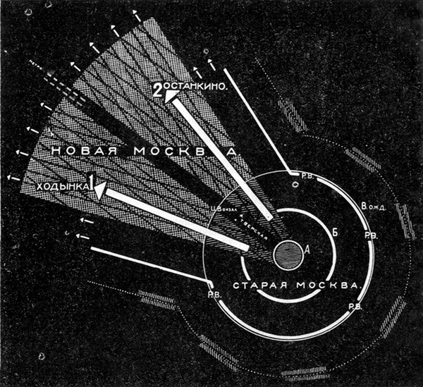Однако сталинский Генплан 1935 года закрепил кольцевую структуру, и «парабола» Ладовского осталась нереализованной.