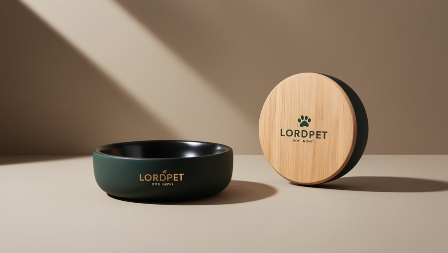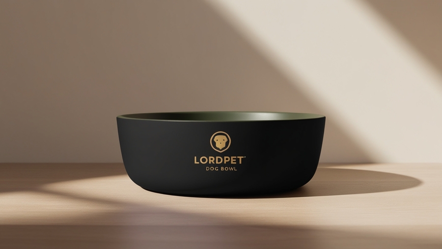 Minimalist dog bowl with LordPet logo.