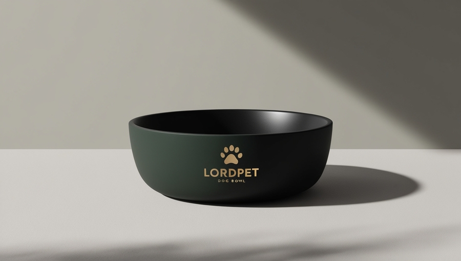 Bowl: Classic shape, possibly with a slight curve to emphasize functionality. LordPet logo: Made in gold, located in a visible place (for example, on the side of the bowl). Light: Soft, diffused light, creating a cozy and comfortable atmosphere. Focus: The bowl should be the center of attention, without unnecessary details, so as not to distract attention from the design. Composition: Simple, with a minimum number of elements to create a sense of calm and elegance.