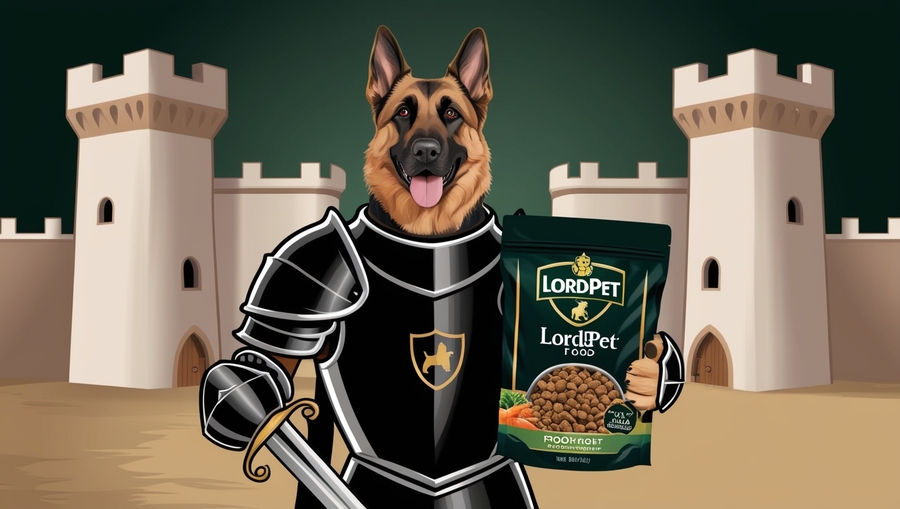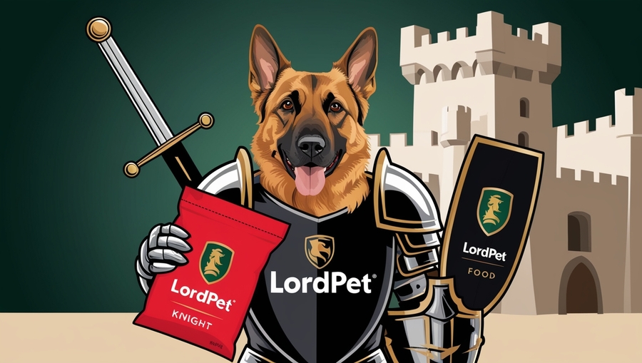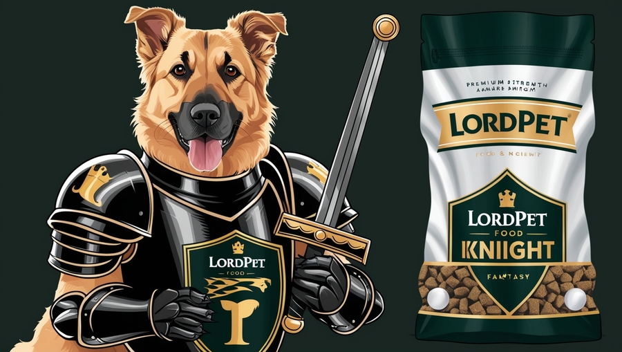 Accent color: Gold (used for the LordPet logo on the food bag, as well as for some armor and weapon details, to emphasize the premium quality of the product)