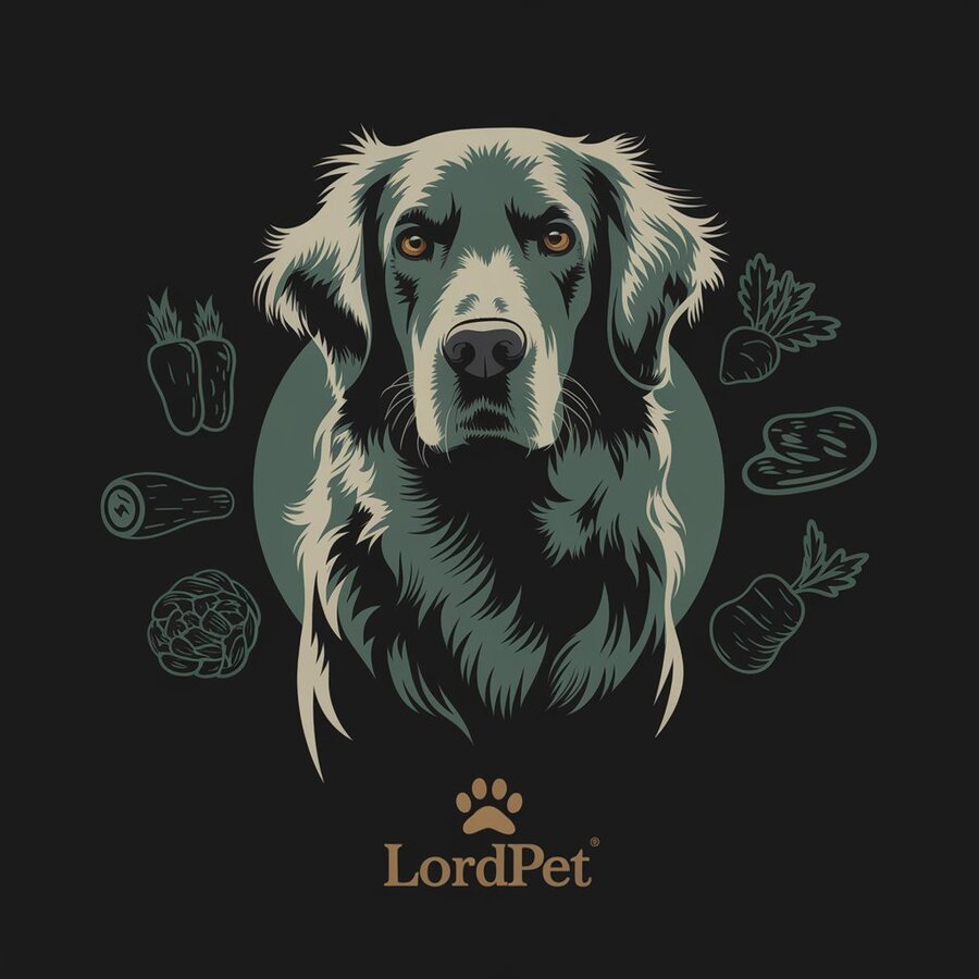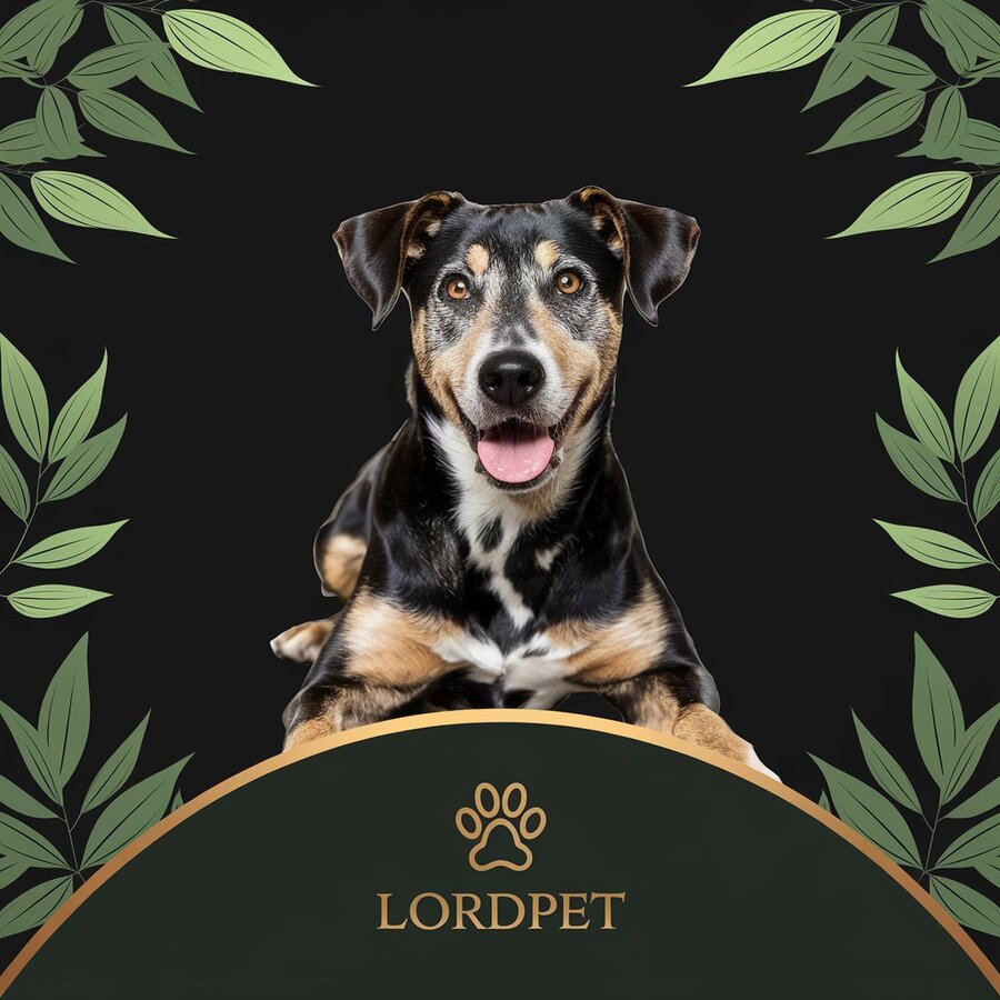 Additional color: Dark green (used for shades in the dog image to emphasize the naturalness and health of the pet). Accent color: Gold (used for the «LordPet» logo, as well as for some details in the dog image, such as the shine of the coat, to emphasize the premium quality of the product)