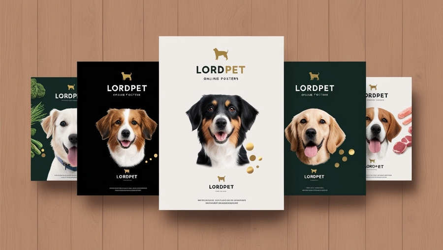 Illustrations: You can use illustrations of natural ingredients (meat, vegetables, fruits) to further emphasize the naturalness of LordPet food. Use dark green and gold colors for illustrations.