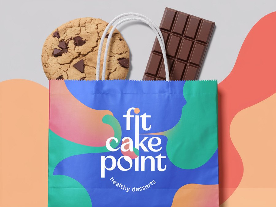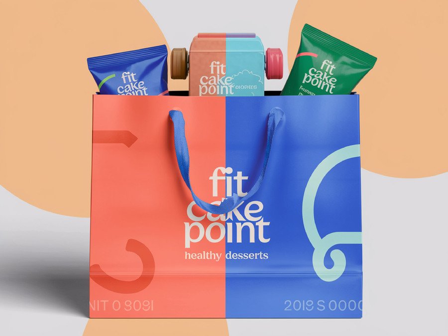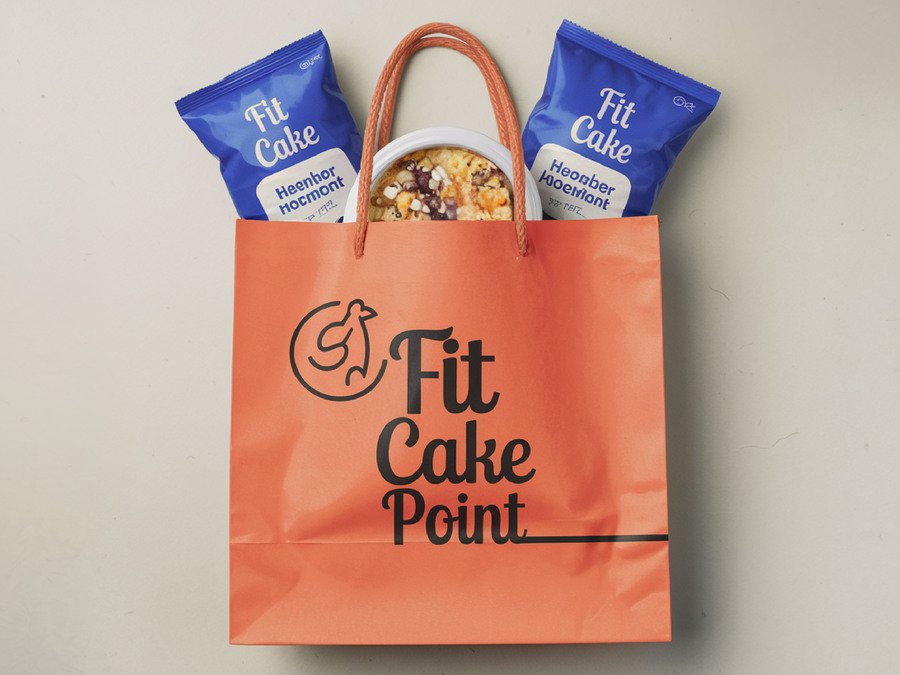 /imagine prompt: generate a mockup of shopper bag on a white background for the rush and movement-inspired FIT CAKE POINT brand which sells healthy desserts
