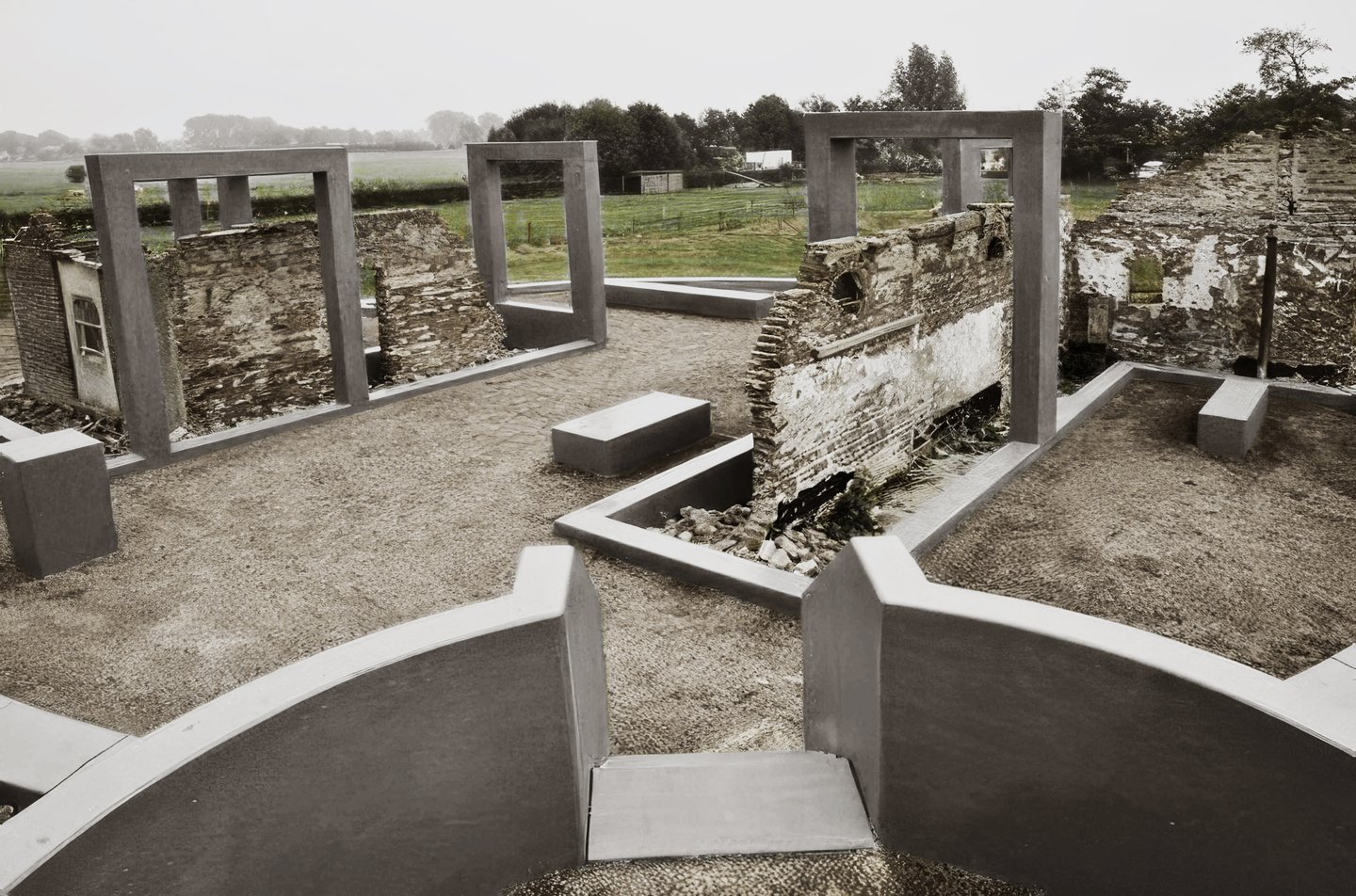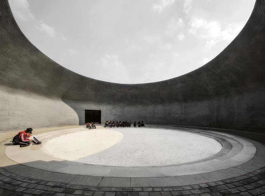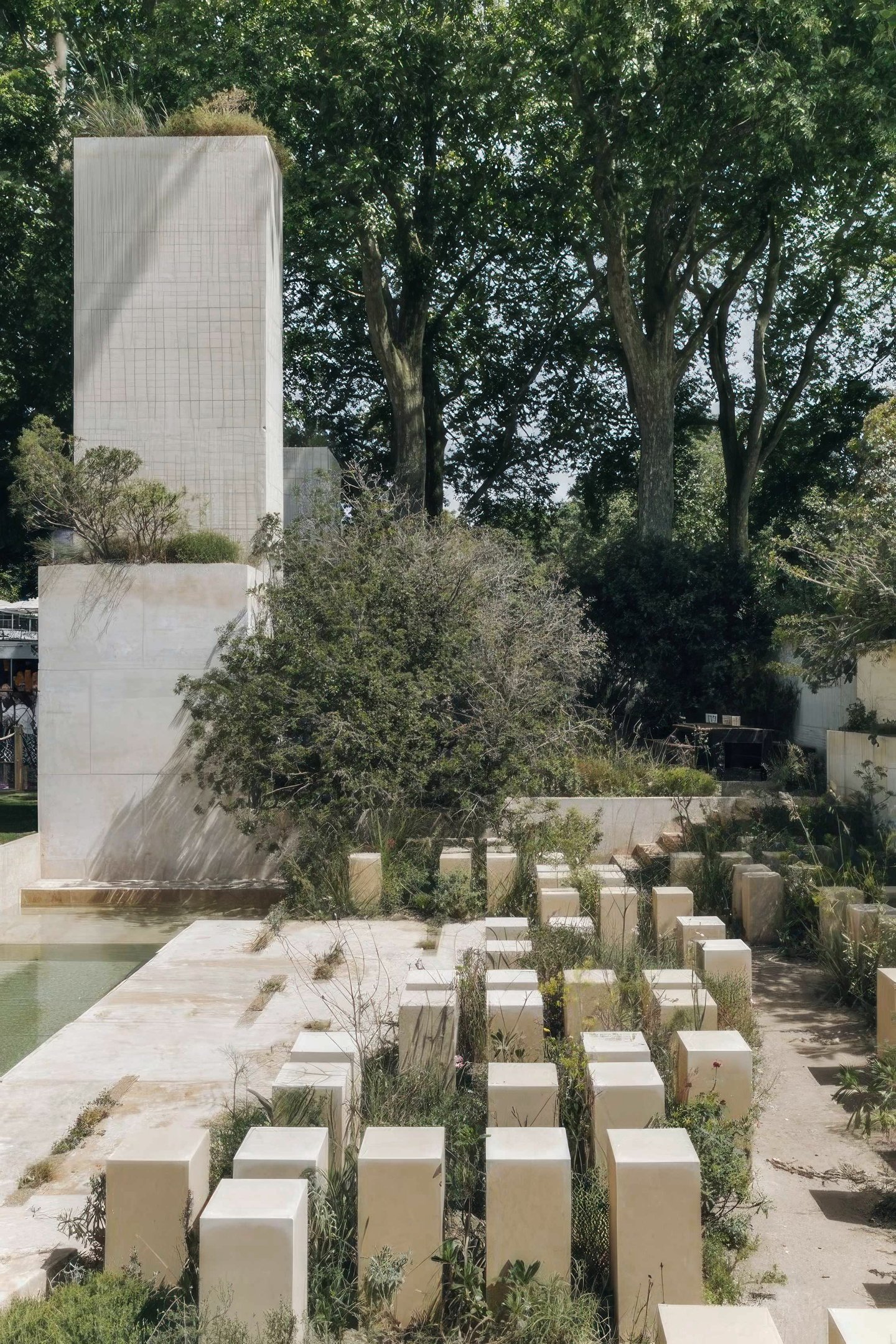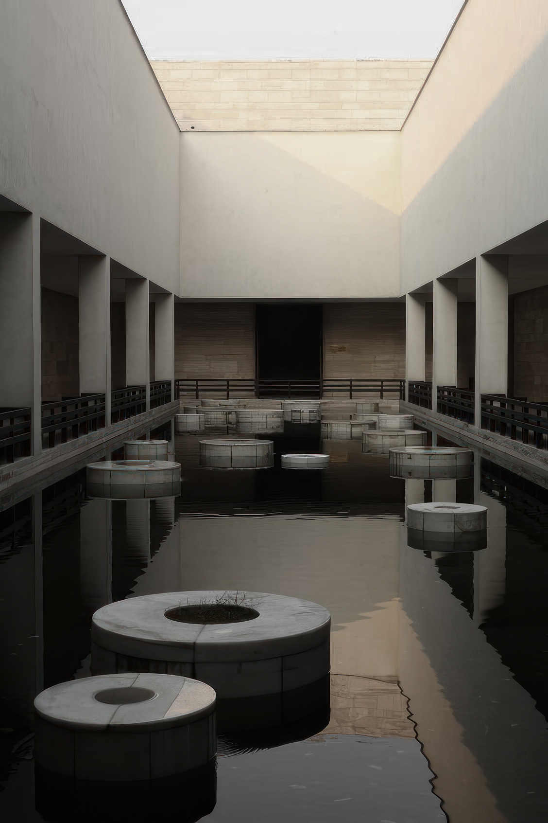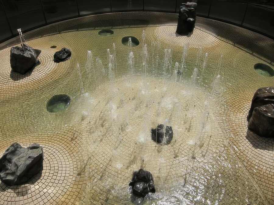 Отсылки к садово-парковой эстетике, историзму и классическим приемам по благоустройству фонтанных пространств и прочих мест, где происходит касание с водой. Словно бассейн, украшенный мозаичной каменной плиткой, в центральном радиусе располагается одна из мокрых точек — сухой фонтан.