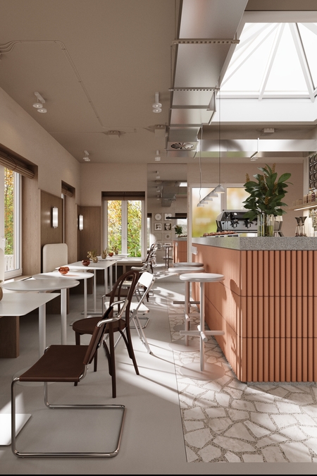 Предлагается спроектировать кафе-бар формата бистро с набирающим сейчас популярность определением ‘casual fast-food’. При создании концепции заведения была изучена окружающая среда. В шаговой доступности проектируемого объекта находится такой памятник советской архитектуры, как Спортивный Комплекс ‘Юбилейный’, это подтолкнуло к идее создания современного кафе-ресторана с упором на быстрое доступное, а главное здоровое и качественное меню, включающее в себя завтраки и обеды формата «конструктор», ужины по меню, а также в формате сет-меню. В проекте предлагается поддержать комфортную ретро-эстетику советского времени как в интерьере, так и в общей концепции заведения. Отсюда вытекает и емкое говорящее название, отсылающее к настроению того времени‘ ОТТЕПЕЛЬ’.