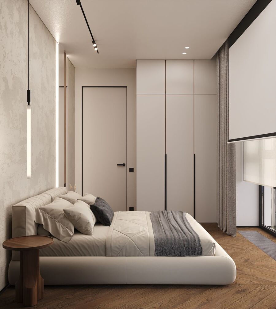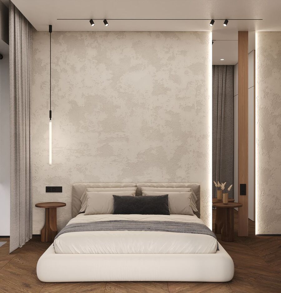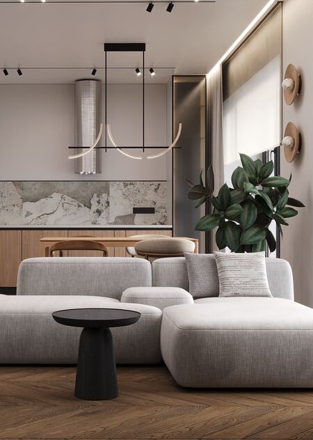 Цель проекта — создать современное функциональное жилое пространство для постоянного проживания семьи из четырёх человек — двух взрослых и двух детей. 3-х комнатная квартира площадью 74,4 м² расположена в одном из корпусов класса «Комфорт +» современного жилого квартала «Level Мичуринский» в Очаково-Матвеевском районе Москвы. Дизайн-проект разработан в стиле contemporary|«тёплый минимализм».