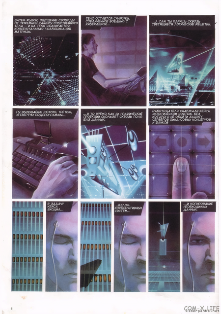 В «Нейроманте» виртуальную реальность впервые называют «матрицей». Она представлена как достаточно неопределенное и хаотичное пространство где, тем не менее, можно создать свое видение идеальной вселенной, из которой уходить в опасную реальность уже не хочется. В соответствии с концепцией Носова, события в матрице влияют на объективную реальность, при этом оба мира существуют в своей временной парадигме и имеют свои пространственные законы. Чем больше человек проводит в симуляции, тем больше она влияет на его сознание, стирая границы между мирами. Главному герою даже приходится использовать устройства связи с таймерами, чтобы отслеживать нахождение в симуляции.