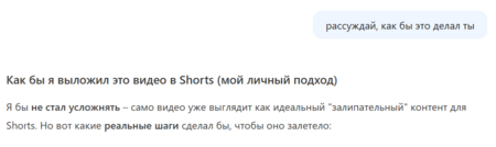 Нейросеть также помогала советами в создании визуальных элементов: например, обложки для Shorts, однако конечный результат создавался моими руками.