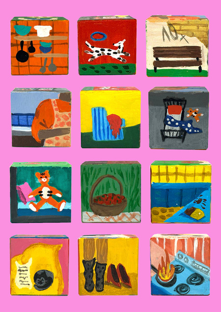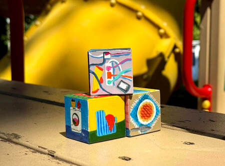 «Дом как конструктор воспоминаний» — художественный проект из детских деревянных кубиков, на которых вручную изображены воспоминания людей, связанные с домом, семьёй, запахами, голосами и тишиной. Кубики складываются в архитектуру памяти, где каждая грань — это часть личной истории, превращённой в игру, форму и образ утраченного или сохранённого дома.