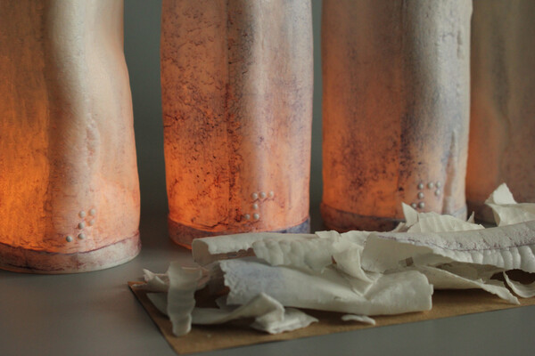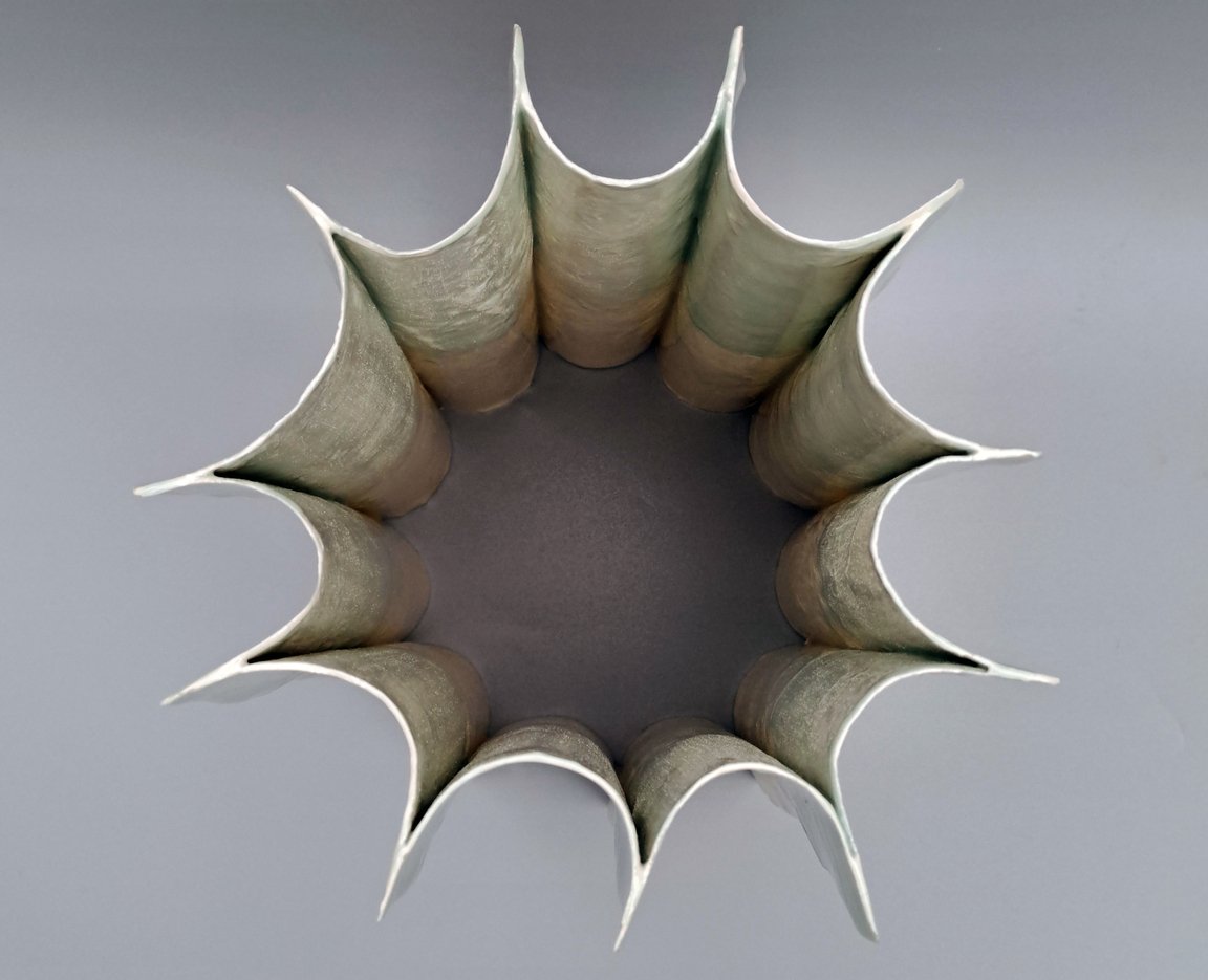 Одинаковые конусы из одного-пяти слоев порфира. Два и более слоев формируют устойчивую в обжиге структуру. Цилиндр из одного слоя рассыпается на фарфоровые лепестки.