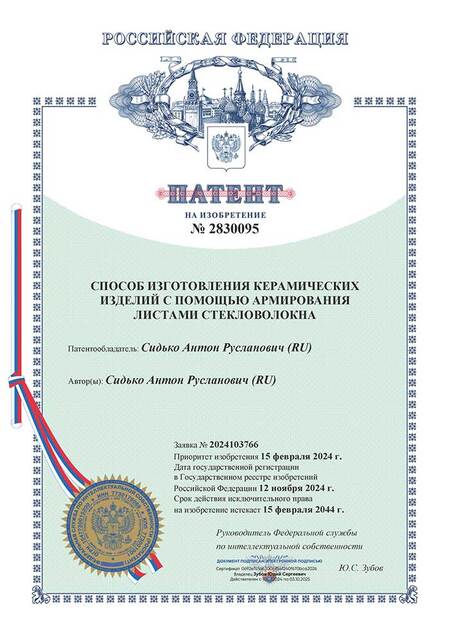 — изобретенный и запатентованный нами метод формообразования в керамике