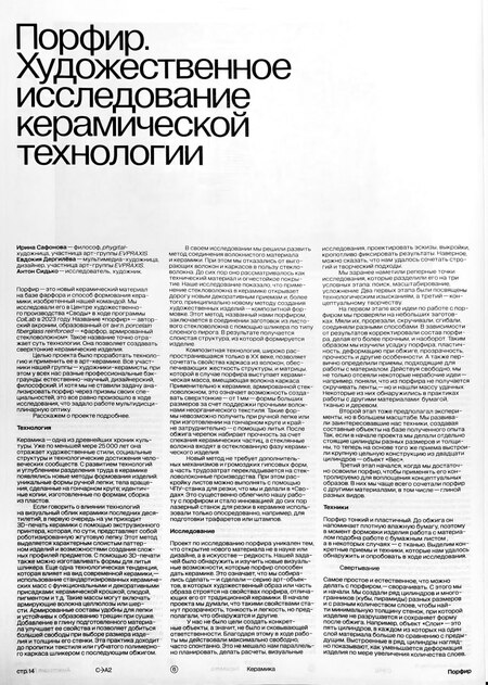 Порфир дополняет известные способы формовки керамических изделий: ручную лепку, изготовление на гончарном круге, отминку, литье по формам и 3D-печать